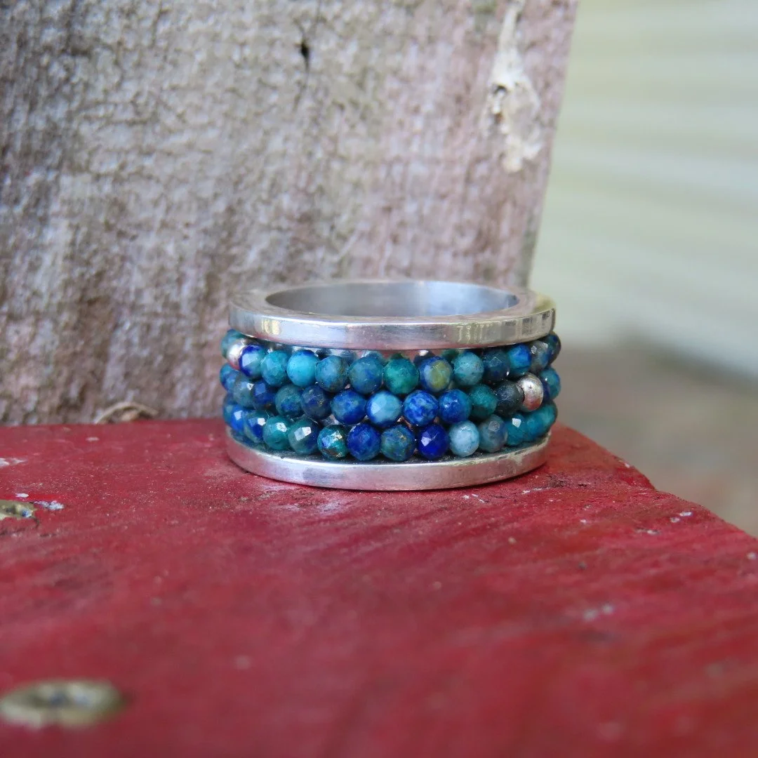 Three Amethyst stones set in sterling silver. Size 9. For emotional balance