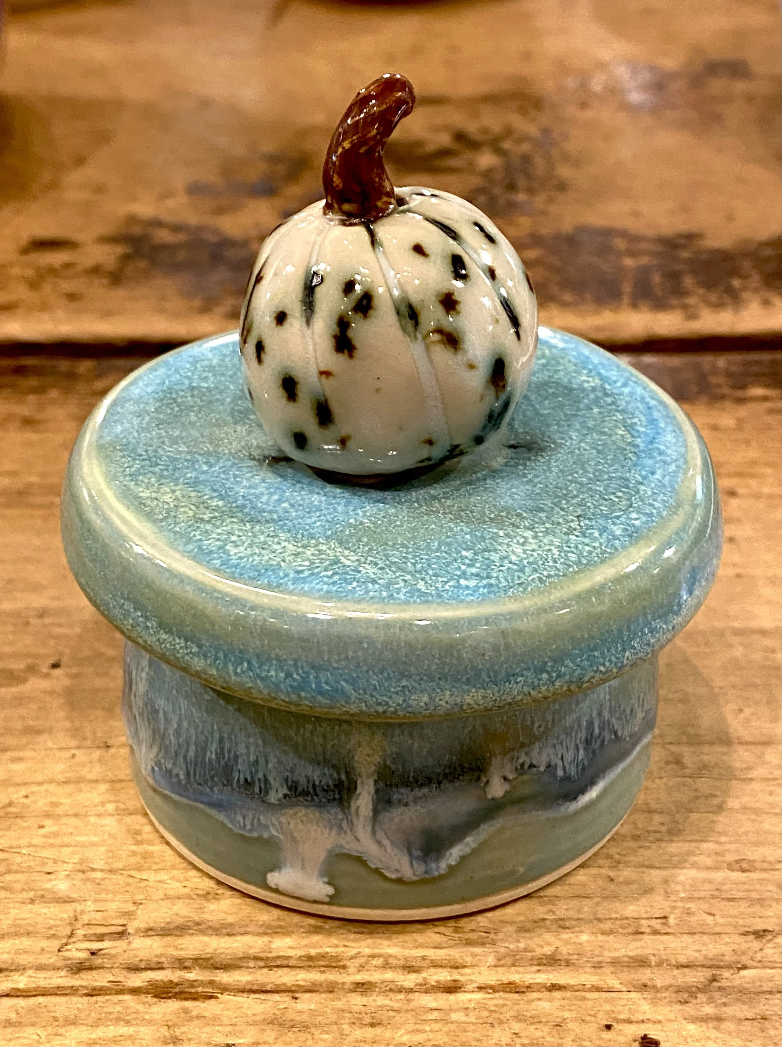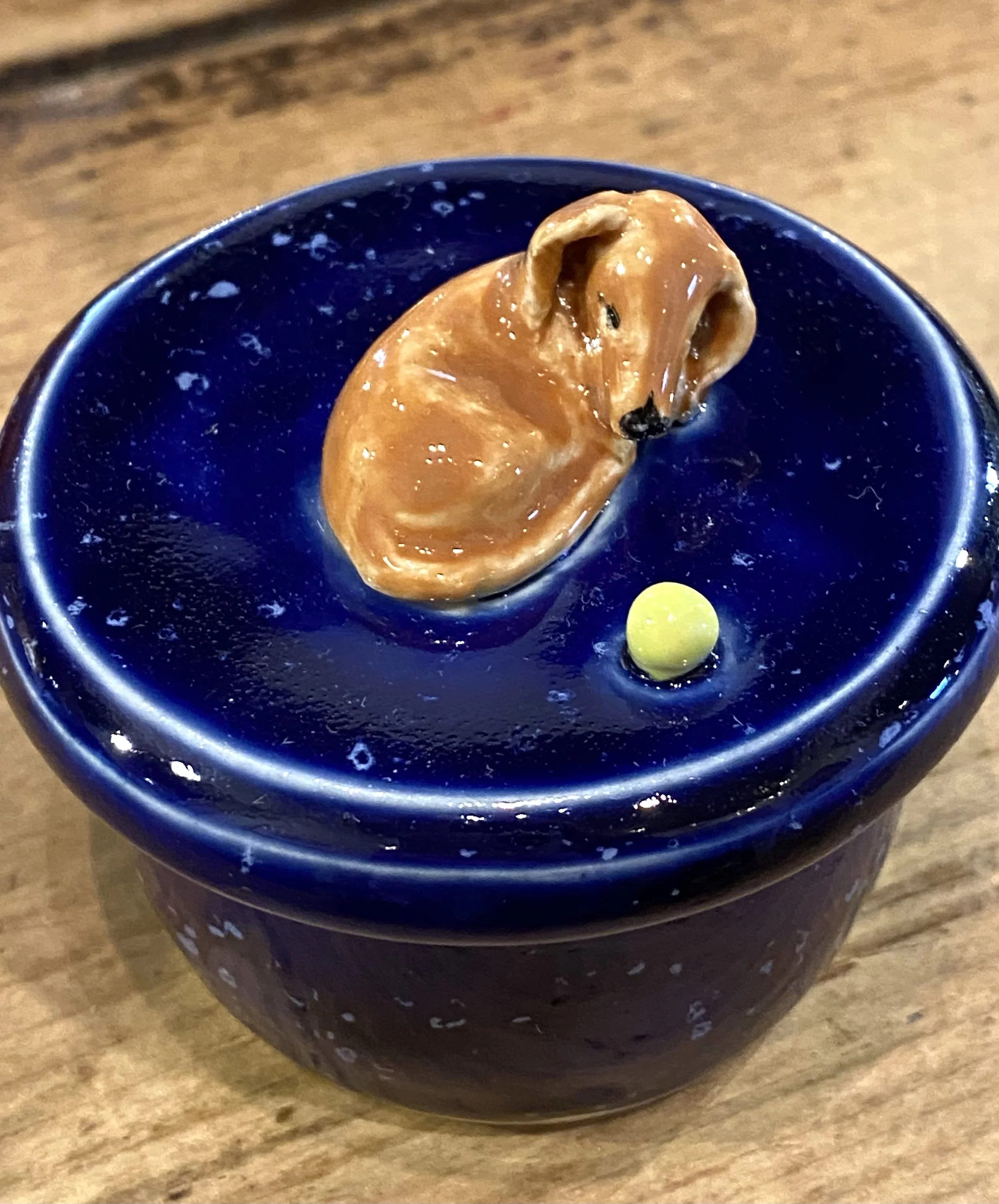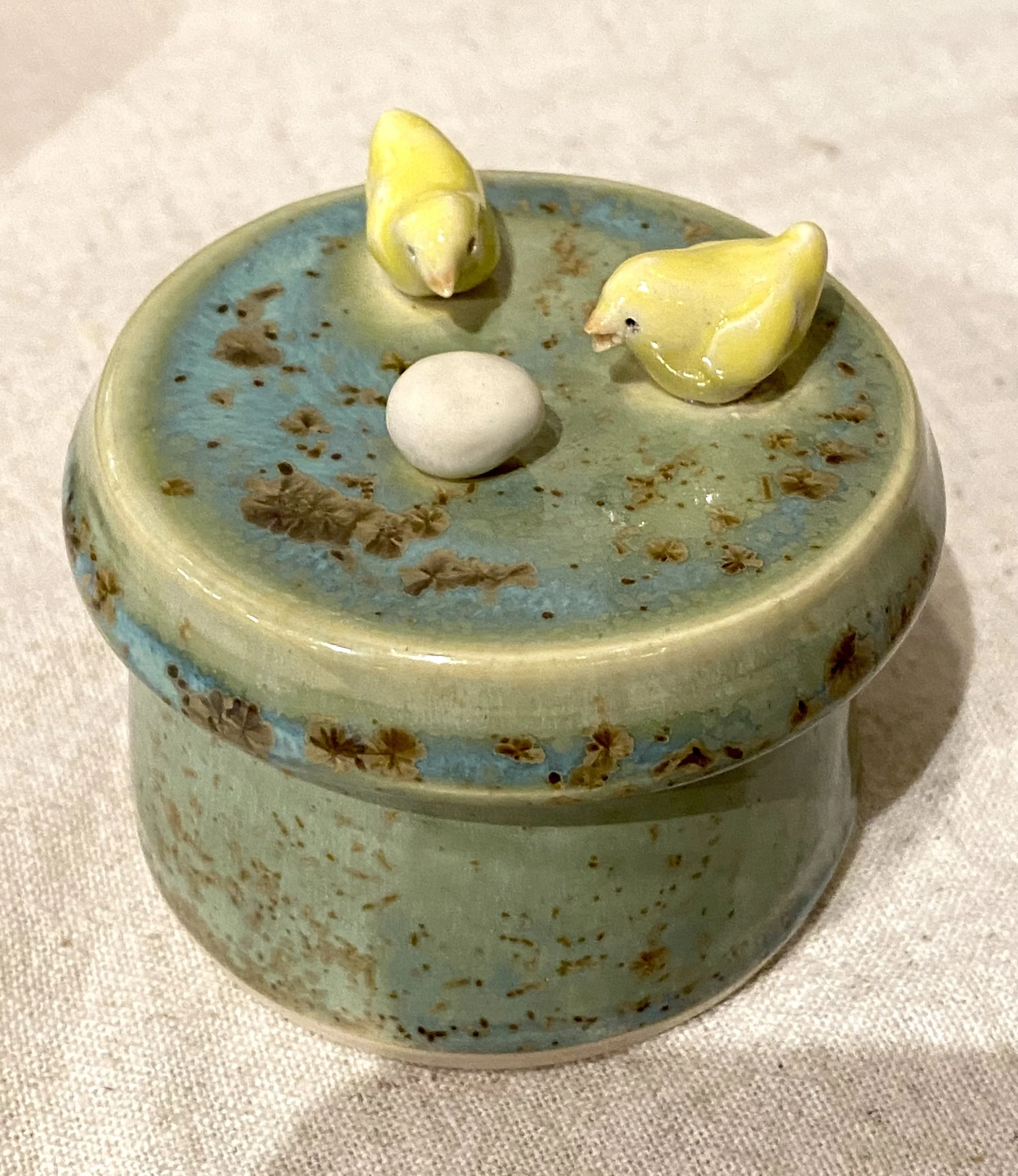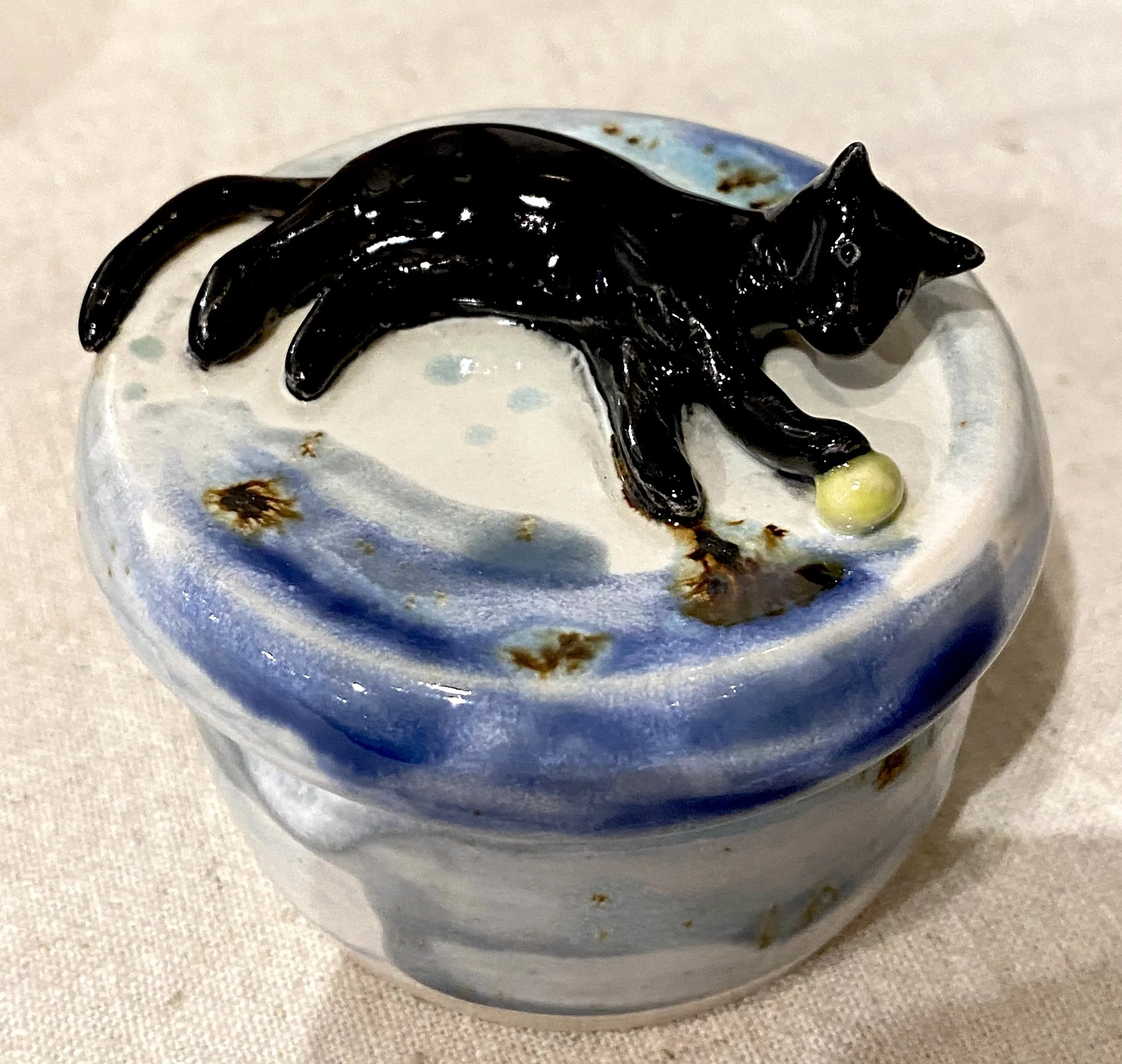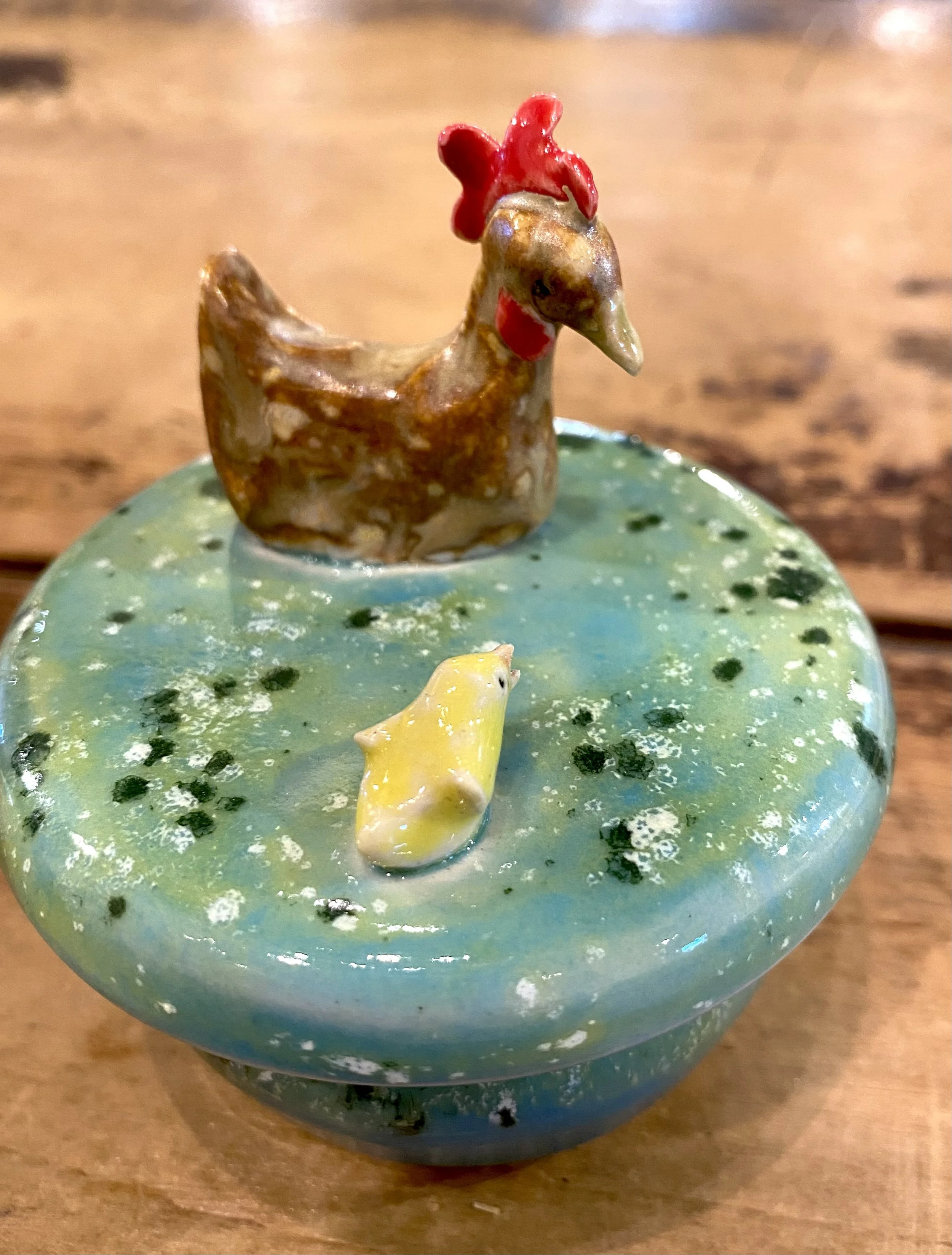Adorable handcrafted horse sculpture from clay artist Donn Rizzo. Speckled glaze. 4×4×10”