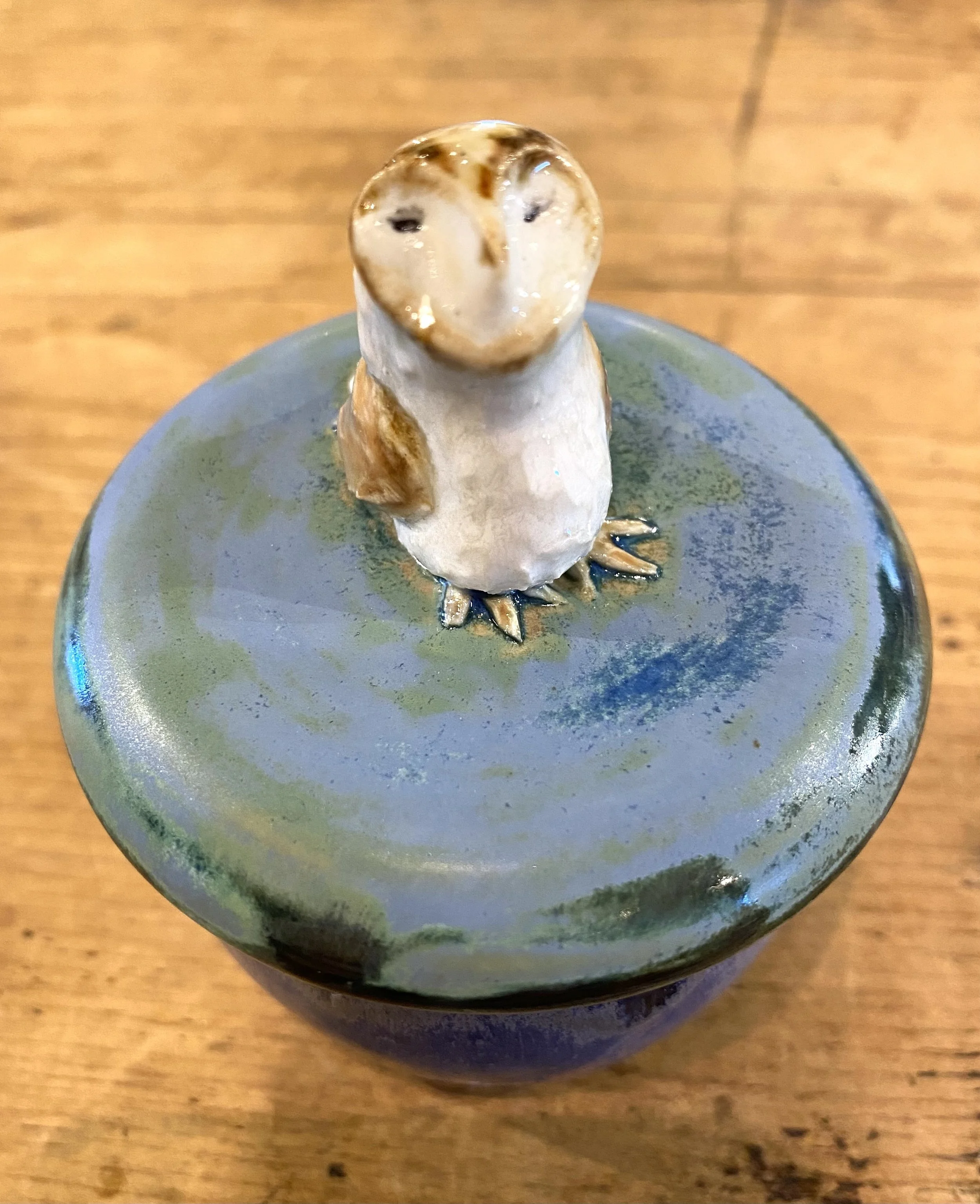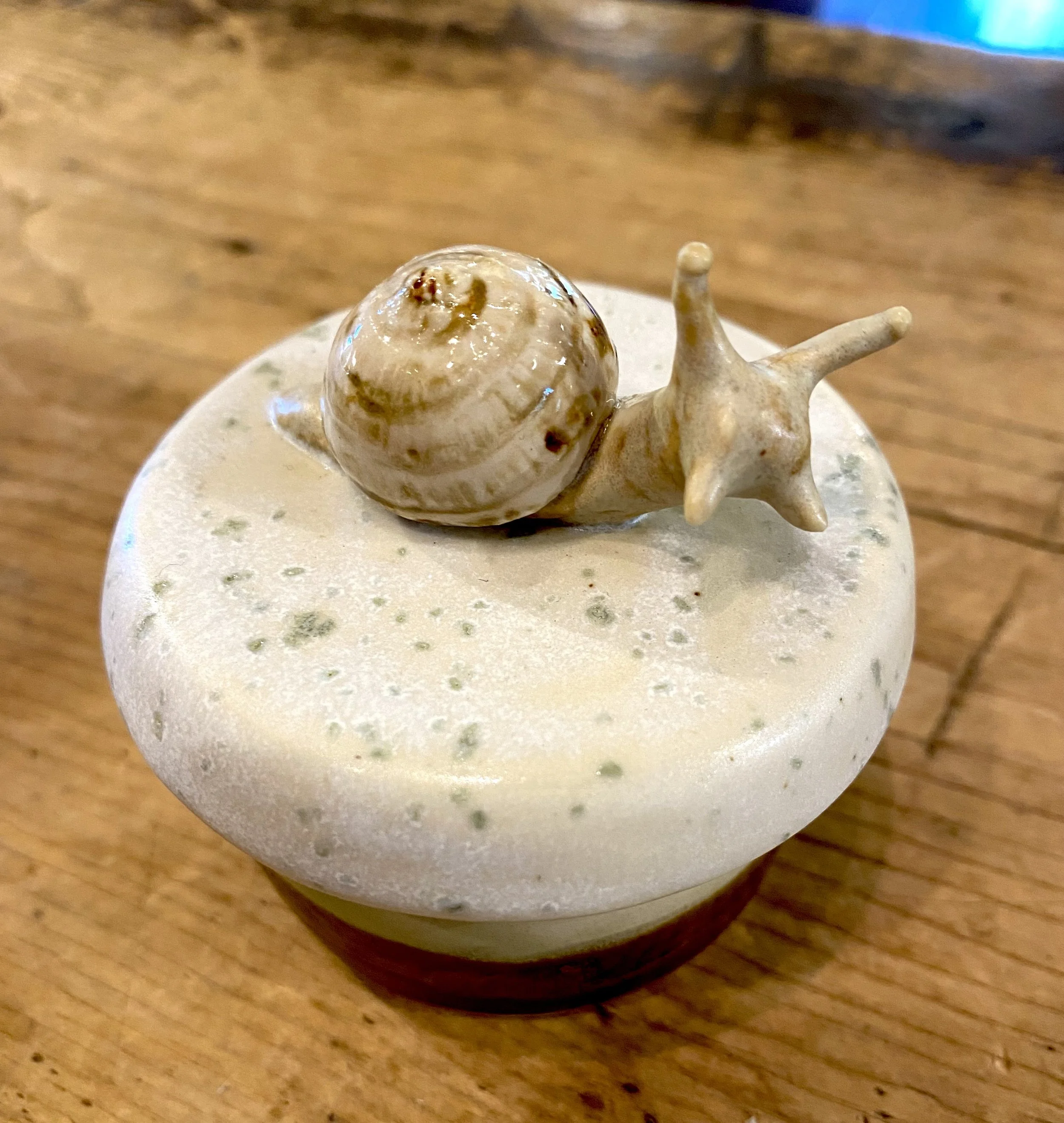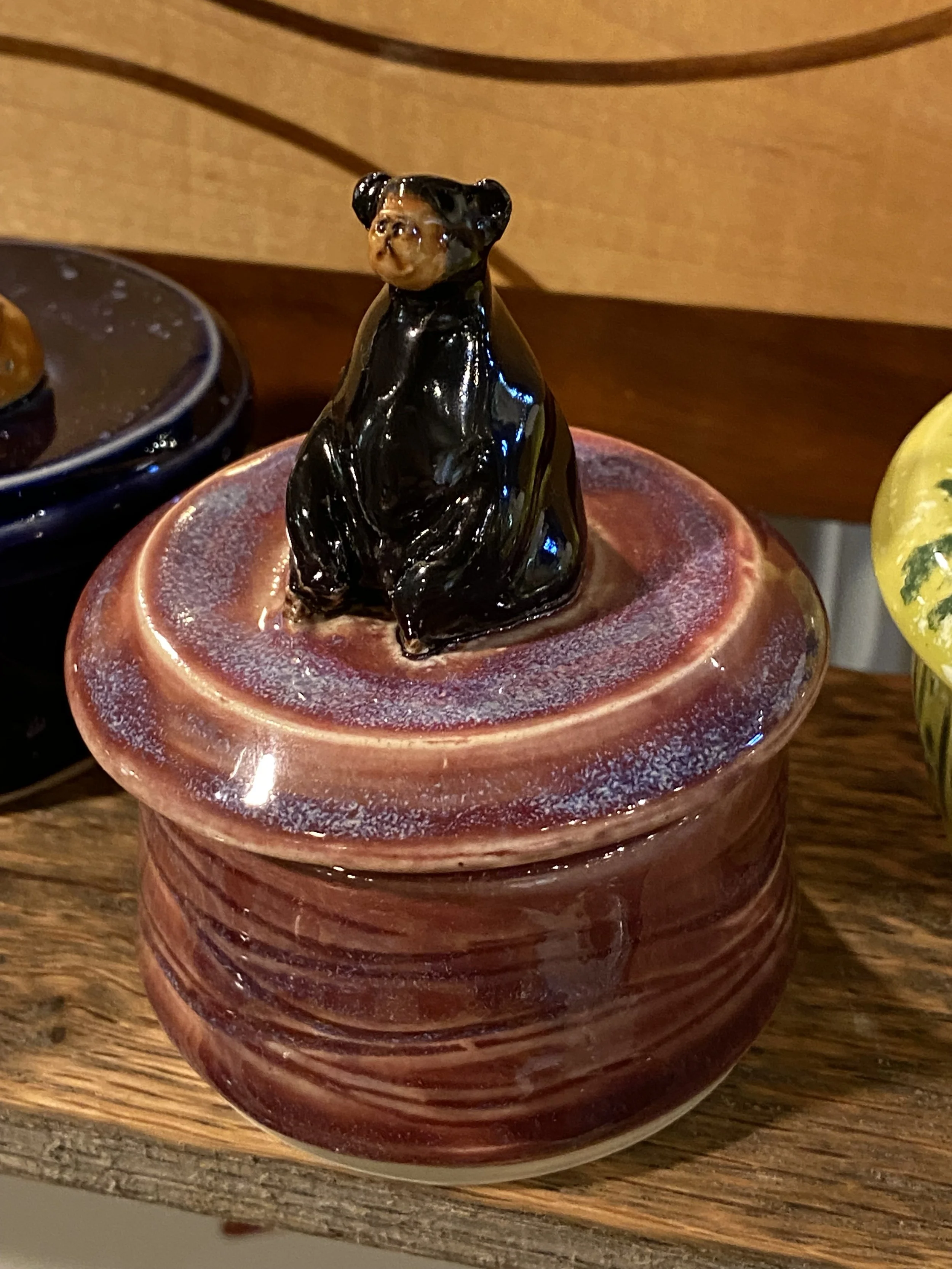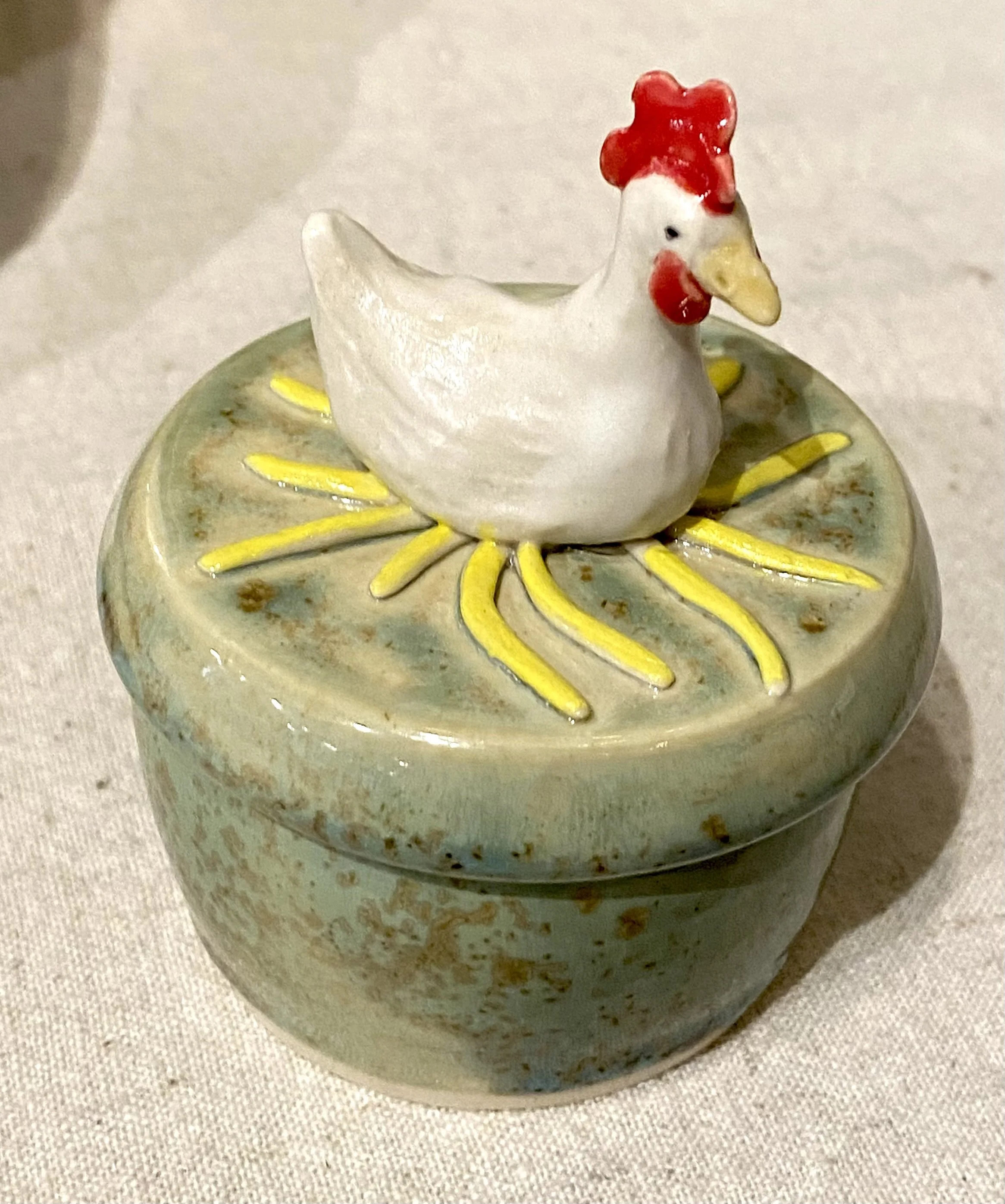 Adorable handcrafted horse sculpture from clay artist Donn Rizzo. Speckled glaze. 4×4×10”