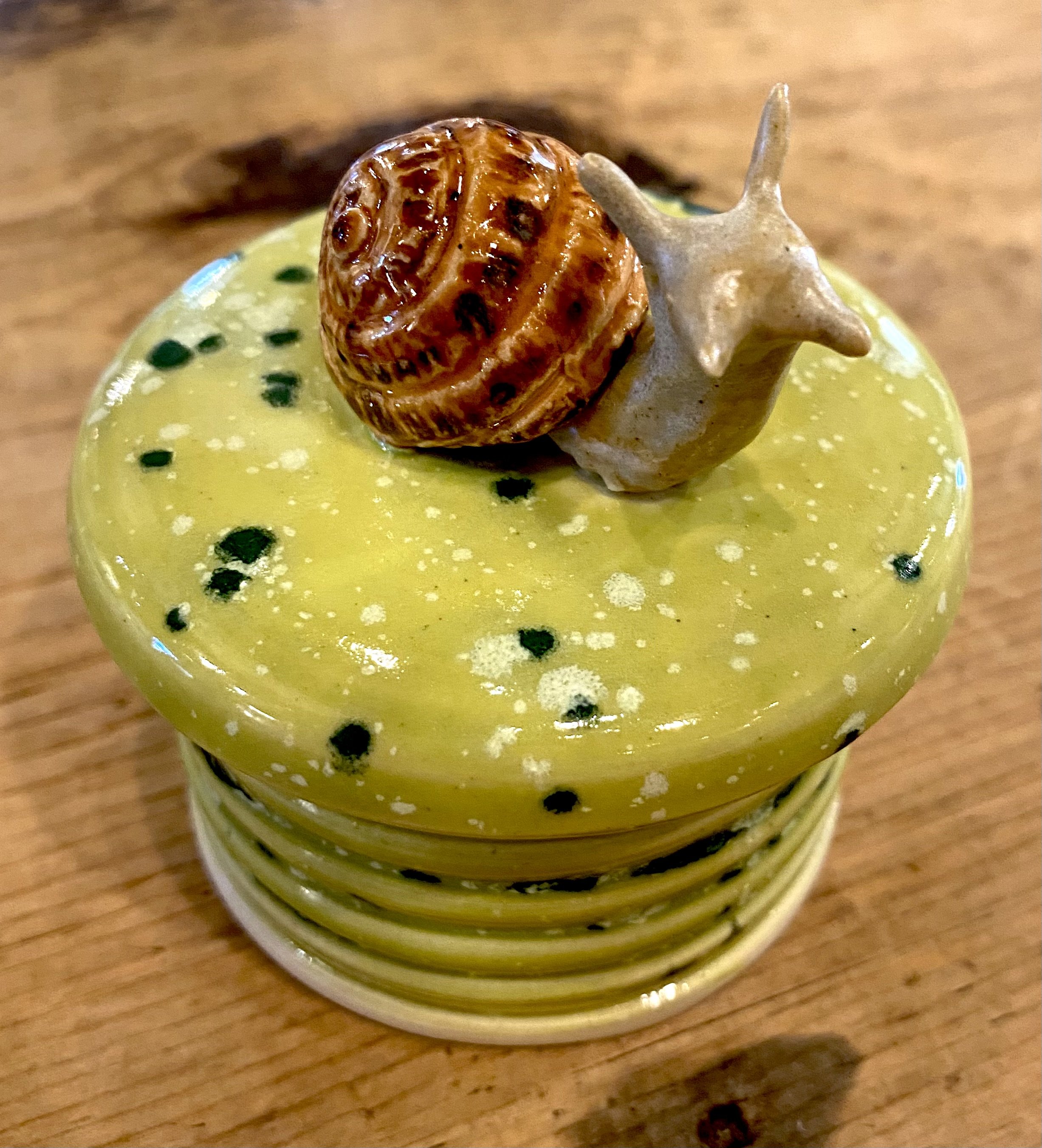 Hand sculpted and painted spoon rests by ceramic artist Kaitlin Savage. Each spoon rest is 5” around and 1/2” tall. Choose between coneflowers or mushrooms.